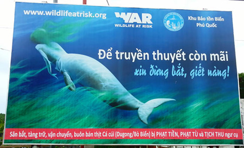 Bảng tuyên truyền bảo vệ Dugong được dựng ở nhiều tuyến đường trên đảo Phú Quốc.
